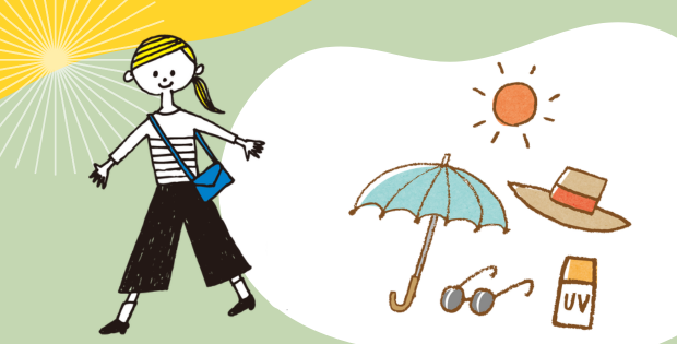 顔だけでなく、肩や腕もしっかりカバーできる大きめのサイズがおすすめです。また、急な雨にも対応できる晴雨兼用タイプだと、一年を通して便利に使うことができます。
